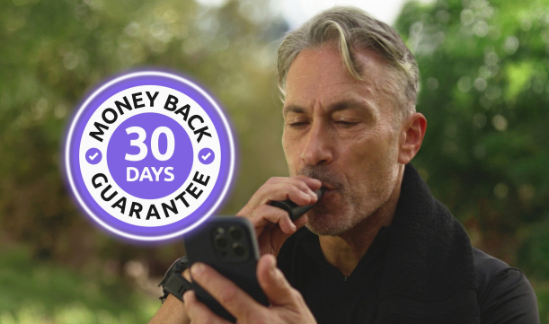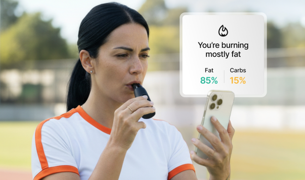 Lumen utilise une technologie avancée de détection de CO pour analyser votre corps et révéler si votre corps brûle des glucides ou des graisses pour l'énergie – et tout ce que vous avez à faire est de respirer dedans !